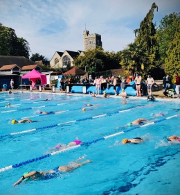 The fundraising event takes place at Guildford Lido on Saturday, starting at 7am and finishes at the same time the next day.